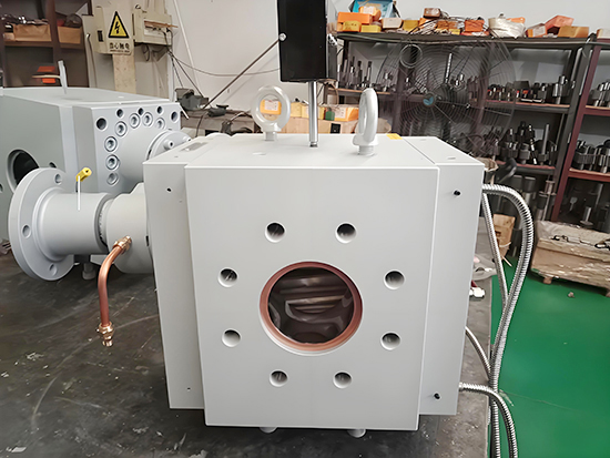 提高擠出產(chǎn)量: 通過(guò)降低對(duì)螺桿的壓力要求,提高擠出產(chǎn)量。熔體計(jì)量泵向模頭建壓,螺桿可以高速擠出,同時(shí)減少熔體在螺筒內(nèi)駐留時(shí)間,穩(wěn)定塑化過(guò)程,降低熔融溫度,從而提高制品產(chǎn)量和質(zhì)量。
